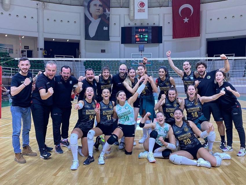 TVF Kadınlar 1. Ligi’nde şampiyonluk hedefleyen Edremit Belediyesi Altınolukspor, İzmir’de karşılaştığı Bornova A.V.R. Atletik’i 3-2 mağlup ederek 8’de 8 yaparak yoluna yenilgisiz lider olarak devam etti.