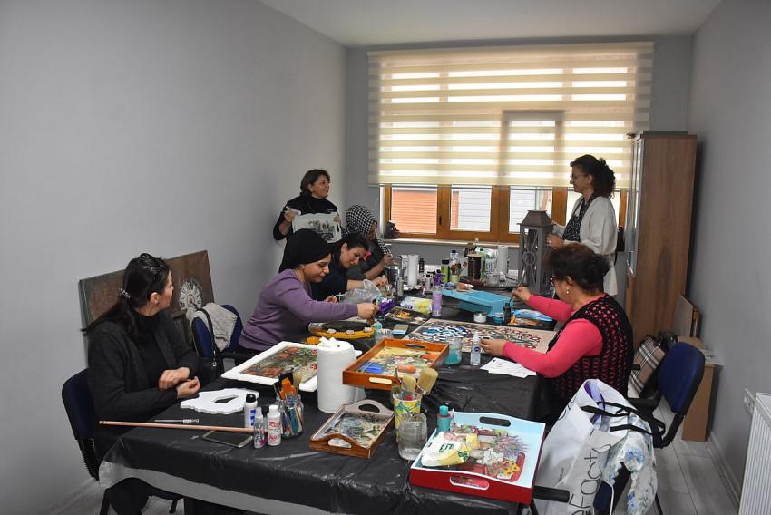 Edremit Belediyesi’nin el sanatları kursu Atatürk Gençlik Merkezi’ndeki yeni yerinde çalışmalara devam ediyor.