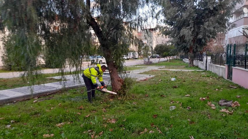 Edremit Belediyesi Park ve Bahçeler Müdürlüğü ekipleri ilçe genelinde, mevsim şartlarına göre ağaçların budama çalışmalarına devam ediyor.